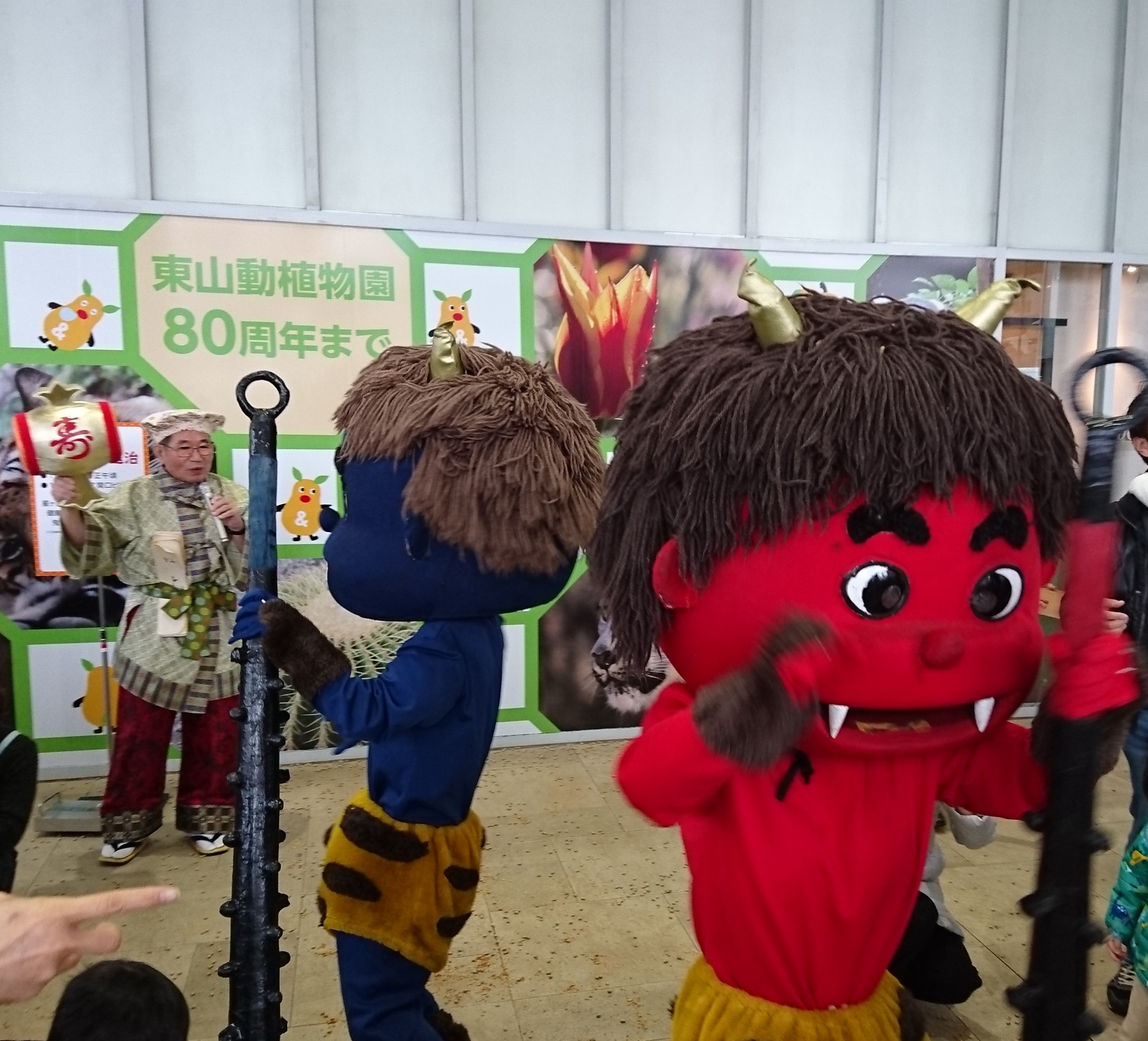 豆福の会長が扮する「福の神」が、弁財天、赤鬼、青鬼とともに、今年は1/30に名古屋市内の百貨店やホテル、幼稚園、福祉施設など10か所をまわりました。今年も皆様に福が訪れますように。