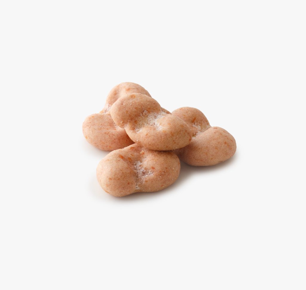 紀州梅の酸味、昆布のうま味をカシューナッツに合わせました。衣に忍ばせた紅麹が隠し味です。